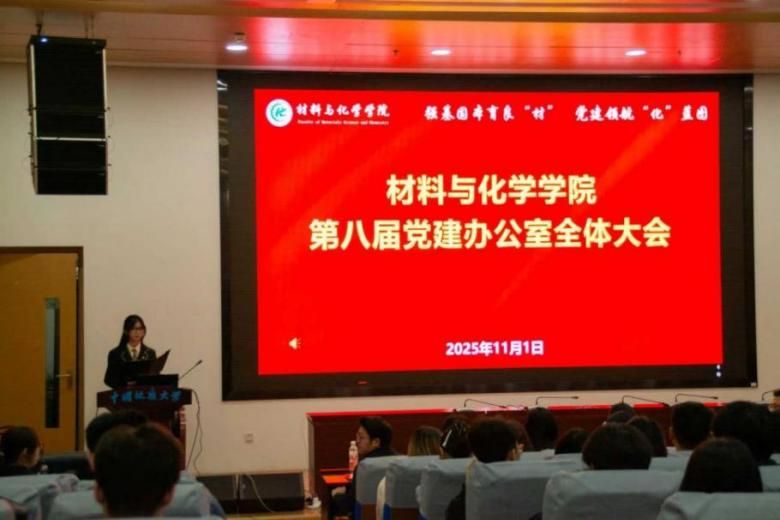 第八届党建办公室全体大会于2025年11月1日晚18:30在材化楼110会议室举行。党员发展部王楉楠主持大会,学院专职辅导员、党建办公室指导老师黄嫣然,专职辅导员、学生会指导老师陈雨蛟,兼职辅导员董柯、闫恬静出席,第七届、第八届党建办公室全体成员及学生党支部委员代表参与。