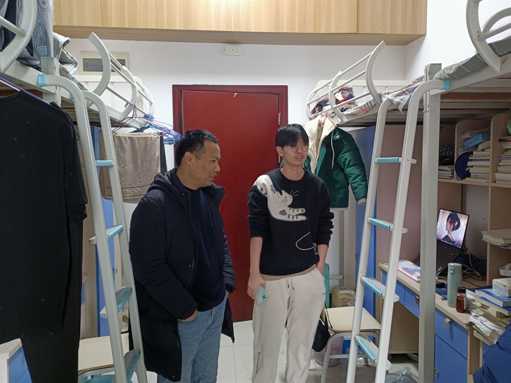 走访过程中,学院领导与学生亲切交流,了解返校情况、假期思想状况、学习生活、考研就业等情况,详细问询学生是否家庭受恶劣天气影响造成经济人身安全损失,提醒学生注意交通安全、实验室安全、宿舍用水用电安全,谨防电信诈骗和接触式诈骗等,勉励学生做好新学期规划,以良好的状态迎接新学期。